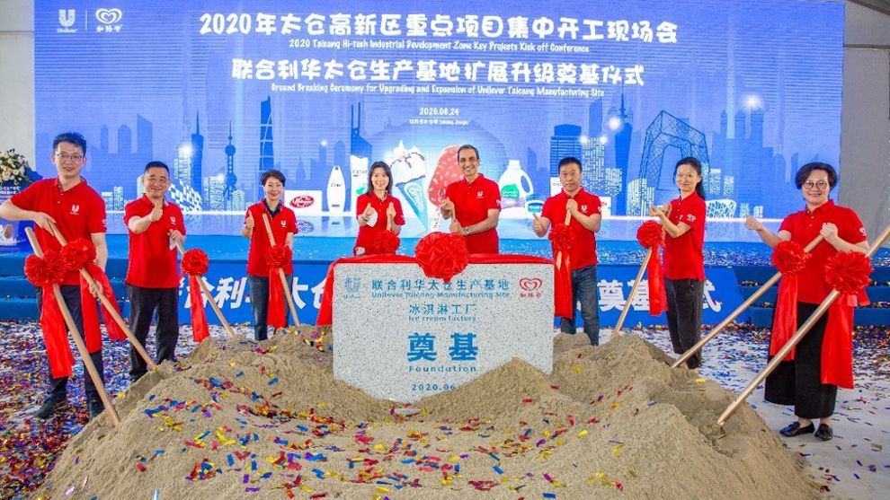 继1996年在太仓建立和路雪工厂之后,全球500强企业联合利华在太仓再度大手笔布局。6月24日上午,联合利华太仓生产基地扩展升级奠基仪式在太仓高新技术产业开发区举行,联合利华将斥资1亿欧元,在太仓建设全新的生产基地,并升级为联合利华中国的食品生产基地。第一期冰淇淋工厂项目预计将于2022年初建成投产。太仓市委副书记、市长汪香元、太仓市委常委、市政府常务副市长顾晓东、太仓市委常委、高新区党工委书记王红星、联合利华北亚区总裁龙嘉华等参加了奠基仪式。